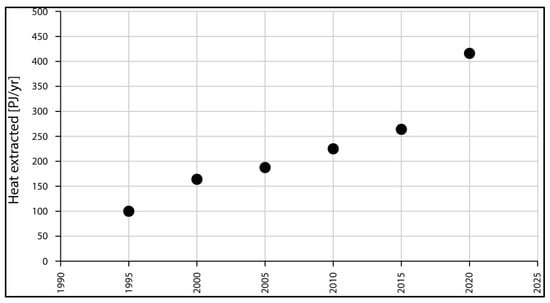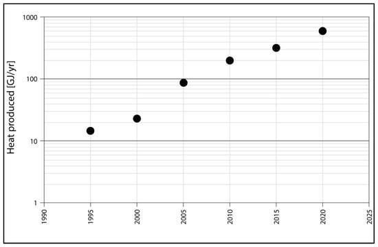The trend in heat delivery from the aforementioned direct systems, excluding GHPs, is depicted in Figure 9, covering the span from 1995 to 2020. While the growth has been remarkable, it is worth noting that the trajectory has been linear rather than exponential.