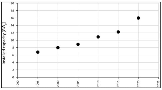 Growth of globally installed capacity of geothermal power plants 1990–2020. From [63], modified.
