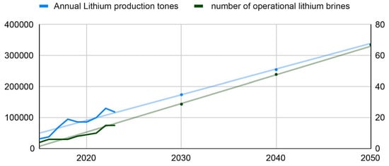 - Global Lithium Production 2022. Available online: https://www.statista.com/statistics/606684/world-production-of-lithium/ (accessed on 29 March 2023).
