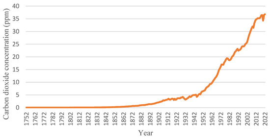 Governments worldwide are prioritizing decarbonization as a critical mission to combat climate change due to greenhouse gas emissions. Electric vehicles (EVs) significantly contribute to clean energy and integrate renewable energy resources into power networks [1,2,3,4]. As the transportation sector is the second largest producer of greenhouse gas emissions, the proliferation of EVs has gained unprecedented attention in reducing pollution and carbon emissions [5]. Figure 1 shows the concentration of carbon dioxide in the atmosphere measured in parts per million (ppm) over the years [6]. Governments and states must take appropriate measures to address environmental concerns. For instance, the Western Australian government in Australia has established an EV working group to promote a more sustainable environment and support future industries [7]. The government encourages the use of battery-operated vehicles to reduce greenhouse gas emissions.