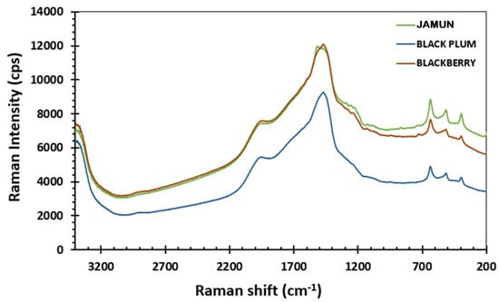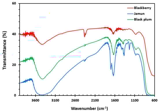 Absorption spectra of jamun, black plum, and blackberry fruit extract.