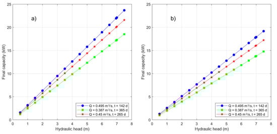 The output power (capacity) can be calculated from the previously obtained data (Formula (3)) [46]: