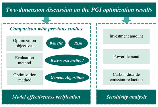 - A two-stage PGI optimization model is developed in this study by considering both risk and benefit factors simultaneously, which can help address the problem of inadequate evaluations of the investment risks and benefits in previous research. Through the sensitivity analysis of three elements, multiple investment portfolios are presented for different situations;