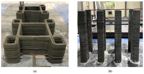 Additive manufacturing techniques have gained increasing attention in the construction industry, and their application has become more common and commercialized [,,]. In 2014, ten basic houses were printed by the Chinese Winsun Company in just one day []. In 2015, this company built a five-story apartment building with an area of approximately 1100 m2, which is currently the tallest 3D-printed structure. The Apis Cor Company is known as the first company in the USA to apply 3D printing technology in construction []. In 2016, a Chinese company, Huashang Tengda, announced that a two-story onsite building was printed within 45 days by using a unique process []. Because the printed building was enhanced by rebar, the company assured that this printed structure was durable enough to withstand an earthquake measuring 8.0 on the Richter scale. In 2017, a 3D-printed concrete pedestrian bridge was opened to the public and designed by a department of the Built Environment, the Eindhoven University of Technology in The Netherlands []. Before operation, this prestressed bridge was tested onsite to ensure its safety. The application of 3D printing technology was realized by the US Army when used to print a barracks [] in 2017. In this project, two structures were printed and distinguished by the wall shape and the connection type with the foundation. A cost comparison indicated that the 3D printing method not only reduced the construction time but also lowered the cost of the structure. Recently, in 2019, a team from Tsinghua University School of Architecture built the world’s longest 3D-printed concrete bridge with a length of approximately 26 m in Shanghai []. This printed bridge was produced over 450 h and incurred a third of the costs of a comparable traditional bridge.