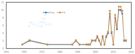 Figure 2 shows the annual numerical distribution for the set of 91 documents reviewed in this study. The study findings show that most of the documents (29 papers) were published between 2018 and 2020. A significant number of papers (eight) and (nine) were published in 2016 and 2018, respectively. Whereas there is a noticeable rise in publication from 2006, we also note that publication in this area started as early as the 1960s with one article recorded in 1964. The results show that research has been growing in this area of grid reliability as the global demand for reliable energy also grows.