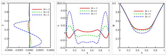 where is the applied uniform magnetic field along the direction. is the density, is the heat capacity, and the thermal expansion coefficient of the fluid is . The appropriate boundary conditions to solve Equations (8)–(12) are: