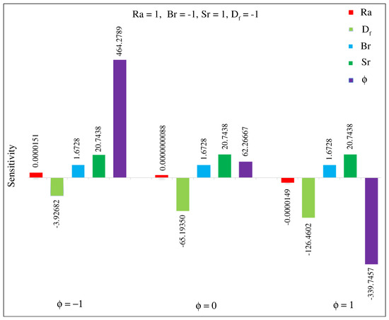 Some of the mathematical parameters need to be defined. For example, is the effective density, the heat capacity is , and the expansion of the thermal coefficient of the nanofluid is , which is provided in the following ways, as described in [17,33]: