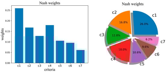 For each criterion, its objective weight is calculated in Equation (15) []: