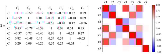 The Mahalanobis distance only considers the covariance between the criteria. However, it solves the problem of different magnitudes between criteria and overcomes the problem of linear correlation of the criteria. However, the inverse covariance matrix only characterizes the fluctuation of the criteria compared to the mean, which may overestimate the influence between criteria, leading to inconsistent results. The Mahalanobis distance can be improved. Firstly, it would be better to use the Pearson correlation coefficient in comparison to the covariance []. This is because the magnitude of the criterion influences the covariance and avoids the significant differences in values that lead to poor correlation. The Pearson correlation coefficient is limited to [−1, 1], which is more reasonable. Secondly, the Mahalanobis distance should be added to the comprehensive weights obtained in the previous section to calculate the distance more scientifically. In summary, the improved expression of the weighted Mahalanobis distance is as follows:
