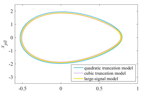 In addition, the ROAs are obtained using the mature inverse trajectory method based on the reduced-order large-signal model, quadratic truncation model, and cubic truncation model. The comparison curves can be observed in Figure 7.