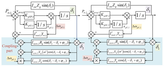 Taking the example of a grid-connected system comprising two VSCs, the corresponding large-signal block diagram is depicted in Figure 10.