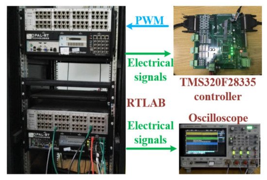 Corresponding HIL experiments are conducted to verify the effectiveness of the proposed method. The circuit is built in RTLAB, and the control strategy is implemented in TMS320F28335DSP. Figure 15 shows the experimental equipment and signal flow. The circuit parameters and the control parameters are the same as in Table 1.
