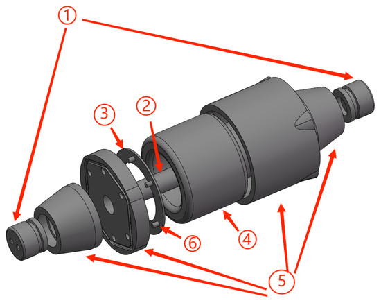 Considering the unsymmetrical structure of the current transformer, the traditional two-dimensional FEM cannot calculate the electric field distribution under unsymmetrical boundary condition. Therefore, this paper uses a refined 3D model to calculate the electric field characteristics of the current transformer. As illustrated in Figure 1, the body of the current transformer consists of two copper primary terminals ①, a copper conductive rod ② on the primary side, an iron bracket ③, and an iron secondary coil core ④. The primary side elements are soldered with metallic copper to ensure good electrical conductivity. In order to improve the electric field distribution, the internal conductor part of the CT is casted in epoxy resin after winding the semiconductor shield. Before casting, it is filled with gas and pressurized to expel air. Additionally, the body and the cast-resin body are chamfered and polished to further improve the electric field distribution. The diameter of the conductive rod varies according to the rated current on the primary side, and the conductive rod with a diameter of 30 mm at 1250 A is the object of this paper. Table 1 shows the material and physical properties of each original component of the current transformer.
