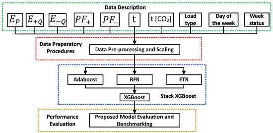 This section of the study reveals the developed methodology and, in addition, provides a comprehensive account of the development process of the Stacking-XGBoost model. Subsequent to the construction of the Stacking-XGBoost model, its validation will be carried out using a small-scale steel industry dataset. Furthermore, the model’s performance will be evaluated utilizing applicable performance indices to validate the effectiveness of each proposed model. The methodologies employed in this work are delineated within this section. This approach assesses and classifies supervised learning methodologies across various independent variables, classifying them into three distinct groupings. These groupings encompass bagging and boosting ensemble strategies, in addition to the Stack-XGBoost model proposed for this study. The concept of an ensemble of regressions endeavors to construct a further effective model through an amalgamation of outcomes derived from multiple regression models. In addition, bagging ensembles serve to curtail model variance while concurrently training subordinate models in parallel. Within this context, the ETR and the RFR stand as predominant manifestations of bagging methodologies. The ensemble boosting techniques strive to mitigate model bias through a progressive process of training multiple models to augment each preceding one. The AdaBoost and XGBoost stand out as the most prevalent exemplars among the prevailing boosting methods.