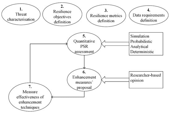 None of the authors combined qualitative and quantitative evaluation, therefore a comprehensive PSR assessment and enhancement framework, shown in Figure 7, is proposed. This framework provides a platform for a mixed-methods approach to PSR assessment and enhancement. The multidisciplinary procedure of undertaking PSR research is a novel approach in PS and provides a methodology for the integration of qualitative and quantitative frameworks for the development of an integrated PSR enhancement model. It further provides for interdisciplinary enhancement measures through stakeholder engagement in the identification of resilience improvement techniques, which are key to acceptance and implementation of measures. It also addresses the locality of PSR challenges. This framework can be utilised by a variety of user groups, from researchers to industries or sectors. It may be used in resilience assessment and enhancement of other critical infrastructures, with or without modifications, depending on outcomes of implementation. The proposed framework informs long-term resilience planning with regards to both economic, political, organisational, and technical viability of enhancement measures.