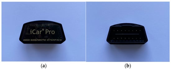 On-Board Diagnostic II (OBD-II) is a diagnostic system used in cars that enables access to a variety of real-time data related to vehicle performance and emissions. The OBD standard (OBD-I) was introduced in the mid-1990s, and all gasoline cars sold in the EU since 2001 (all diesel cars since 2004) have been required to have an OBD-II system. This system can read information about the vehicle sensor’s status from the engine control unit (ECU) through the use of an OBD-II adapter, which is connected directly to the vehicle [31,32].