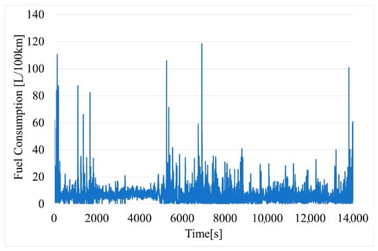 Since it is not possible to determine fuel consumption in L/100 km when the vehicle is idling (no displacement), the following rule for data selection was adopted: speed > 0 and gear > 0.