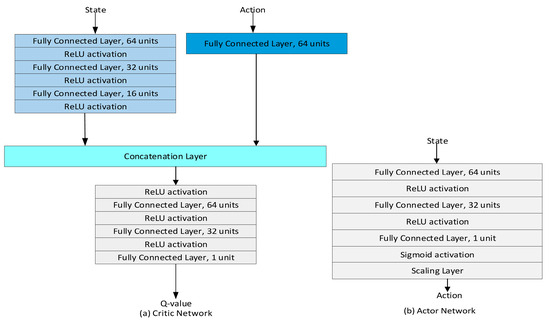 The TD3-based agents were built with specific neural architectures for critics and actor neural networks with similar architecture for the target neural network. Then, the layerwise actors’ and critics’ neural networks with their targets were properly engineered and parameterized with desired activation functions and appropriate initial weights and biases. Finally, the hyperparameters were carefully selected to train the agents optimally after the series of training up to 500 episodes. Similarly, all the hyperparameters and neural architectures were kept the same in the DDPG agents for accurate comparison.