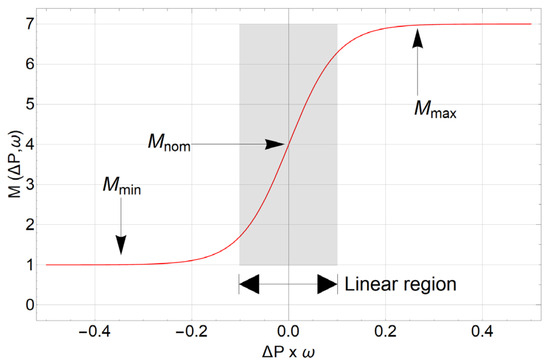 An understanding of some of the properties of the hyperbolic function is needed to understand the origin and behaviour of the proposed controller. Typical curves are plotted in Figure 4. At small values of , is almost a linear unity gain over the domain . Beyond that, acts as an ideal saturation function with a peak range of one . It is obvious then that provides a smooth transition between its linear region and saturation and conveniently between its upper and lower saturation limits. Moreover, the linear gain region can be adjusted with the coefficient to be sharper or more relaxed, as shown in Equation (4). Saturation levels can also be scaled with the coefficient ]. Finally, a bias level can be added to maintain the variation within the positive domain. Thus, based on these parameters, the function is rewritten as follows: