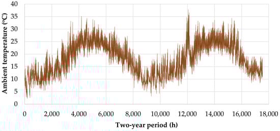 Hourly ambient temperature in the 2-year period from 2019 to 2020 in Arkalochori.