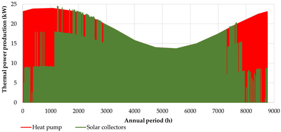 Heat pumps, both as auxiliary components and primary systems, offer a versatile solution for heating and cooling needs. For instance, a study that compared a water solar-assisted heat pump (W-SAHP) with conventional gas-boiler plants in Italy found that W-SAHPs could achieve energy savings ranging from 35 to 50% [38]. However, it is worth noting that the efficiency of these systems tends to decrease with the site’s degree days. Further research by Chow et al. into solar-assisted heat pump systems for indoor swimming pool water heating revealed that such systems could achieve a coefficient of performance (COP) of 4.5. Impressively, this translates to an energy-saving fraction of 79% compared to traditional energy systems [39].
