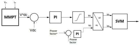 For the above four leg topology, it is controlled via SVM using a Maximum Power Point Tracking (MPPT) as input, as shown by the following block diagram (Figure 10).