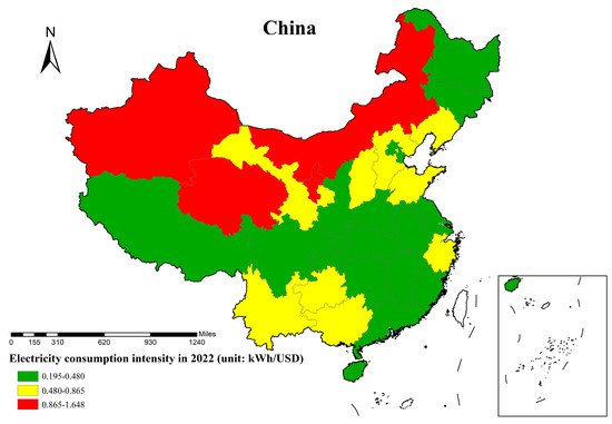 Electricity consumption intensity of each province in 2022 (electricity consumption divided by GDP).