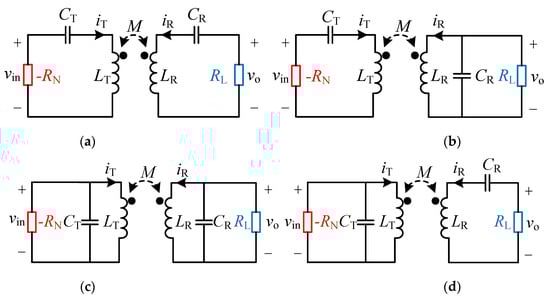 Basic topologies of the WPT system using a negative resistor. (a) SS topology. (b) SP topology. (c) PP topology. (d) PS topology.