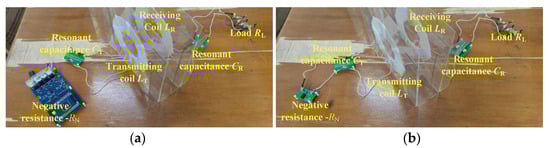 Experimental prototype of the NR-based WPT systems. (a) With the negative resistance constructed by a full-bridge inverter. (b) With the negative resistance constructed by an op amp.