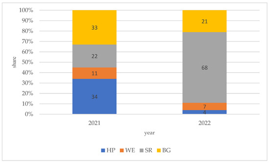 Hydropower plants continued to produce the most energy in 2021, but photovoltaic plants produced the most energy in 2022. This significantly changed the structure of RES production (Figure 6).