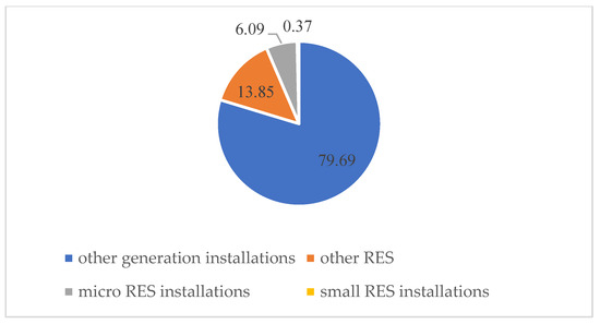 The COVID-19 pandemic has affected many areas, such as trade, services and industries, causing changes in power demand patterns. The sudden reduction in many areas of social life has raised the uncertainty about the magnitude of power demand [1,2,3]. The behavior of any economic system can be studied in many variations; no relevant forecast should be neglected and other additional variables can be integrated into a model [2,4,5]. One of the consequences of the pandemic, which only became particularly acute later on, was the high level of inflation. This was partly due to dynamic price increases, including those of fuel [5,6,7,8]. The pandemic has affected global supply chains. As the IEA argues, the anticipated impact on the Renewable Energy Sources (RES) industry was primarily related to delays in investment, state-imposed restrictions and social distance guidelines, as well as emerging financial challenges. The launch of component production in Europe was also an important factor in the smooth passage through the pandemic. Plants offering local PV modules, inverters or wind turbines were established in Poland, Germany and the Czech Republic. Consequently, despite concerns, the pandemic did not significantly affect the level of RES development. The majority of experts (67%) at the National Economic Institute, Poland, claimed that the pandemic will accelerate attaining the set goal, while only 14% believed that it will delay it [9]. At the same time, the share of respondents who consider an increase in the share of clean energy important for Poland’s development has risen from 91% to 95% [9]. Mędrzycki [10], in line with Szyrski [11], emphasizes that the objectives of energy-related regulation are multifaceted, including the goal to create conditions for sustainable national development. He highlights the fact that the large-scale use of renewable energy sources is no longer merely an object of technological interest, but has become a necessity related to public safety as one of the elements essential for survival in situations of crisis. Thus, it seems crucial to track and identify opportunities for RES development during difficult-to-predict changes in the economy caused, for example, by a pandemic. Small renewable energy power plants benefit from preferential treatment when dealing with the administrative paperwork involved in their launching (e.g., easier connection to the grid, no need to draw up concession contracts). Nonetheless, such installations still represent a small percentage of the structure of all RES producers. As of the end of 2020, the total installed electrical capacity of all RES facilities in the electric power system in Poland was just 10 GW, of which slightly over 183 MW was generated in small RES power plants [12]. According to the Energy Market Information Centre in Poland, the increase in the share of electricity generated from RES was 0.8% annually over the three years from 2019 to 2021, and reached 13.6%.
