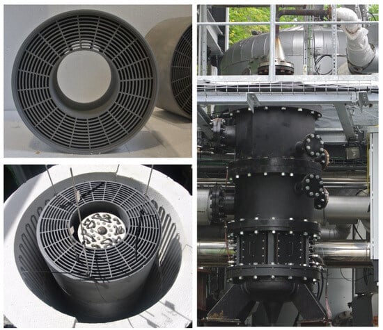 Such solid-based thermal energy storage systems also play a central role—in addition to the activities within the Energy Lab 2.0 project—in efficiency improvements and flexibilization of conventional [6,7] and solar thermal power plants [8,9] as well as in industrial processes [10,11]. In addition, these thermal storage options are key requirements in large-scale electrical energy storage systems to achieve high efficiencies. Typical applications for this can be found in adiabatic compressed air energy storage power plants [12,13] and Brayton process-based Carnot batteries [14,15].