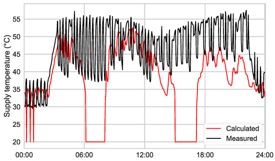 Measured supply temperature (black) vs. necessary supply temperature (red) at .