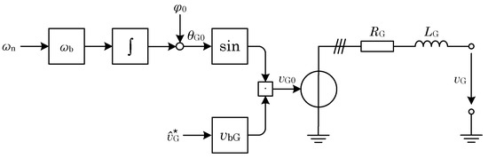 Here, it can be seen that no PLL is necessary for the control. It can be used additionally to deliver grid control power in the form of , but this is also possible with the internal frequency . It is therefore only necessary to connect the converter to the grid initially, and no longer during grid operation.