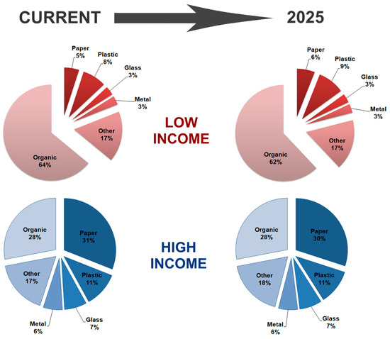 Solid waste composition by income and year. The figure was redrawn based on [3].