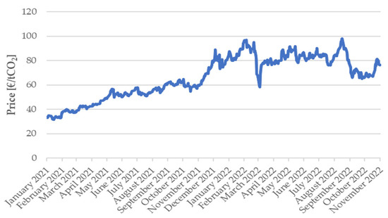 Price data from 2021 to 2022 for the EU ETS [93,99].