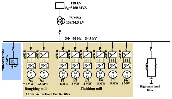 - Alonso Orcajo, G.A.; Rodríguez Diez, J.; Cano, J.M.; Norniella, J.G.; Pedrayes González, J.F.; Rojas, C.H.; Ardura, G.P.; Cifrián, R.D. Enhancement of Power Quality in an Actual Hot Rolling Mill Plant Through a STATCOM. IEEE Trans. Ind. Appl. 2020, 56, 3238–3249. [Google Scholar] [CrossRef]