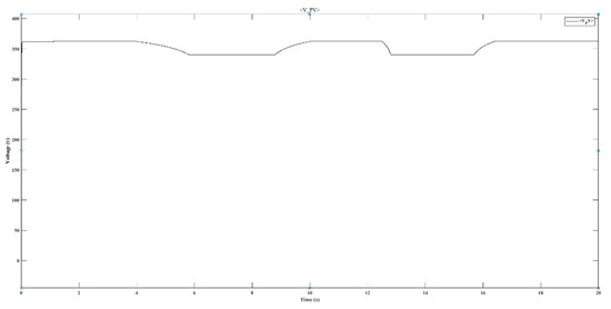 For reference, Figure 12 displays the voltage profile of the solar panel utilized in the recommended system. The graph shows how the voltage changes over time and offers valuable details on the characteristics and actions of the PV panel. This information is necessary to comprehend the PV panel’s efficiency and output in producing power.