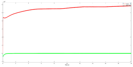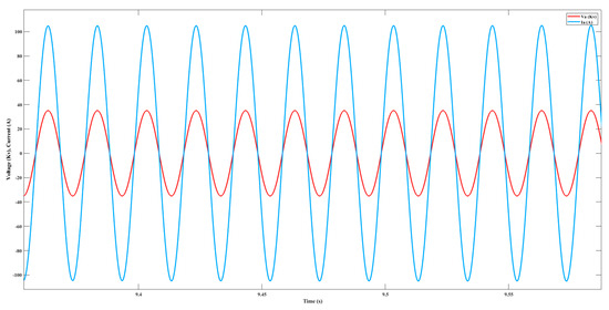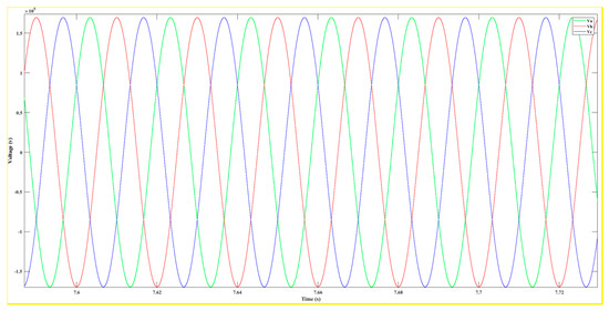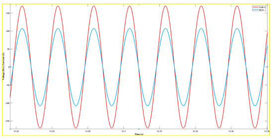 Figure 13 displays the output voltage profile of the boost converter for the PV system. This graph shows the voltage behavior over time and demonstrates how effectively the boost converter regulates and reduces the PV panel voltage. The recorded voltage values give crucial details regarding the converter’s efficiency, stability, and adaptability to changing environmental conditions. Figure 14 displays the sinusoidal waveforms of the three-phase injected current. Figure 15 shows how much actual power the system’s part A generates. The characteristics of the generated voltage and current are finally displayed in Figure 16. These facts offer a full understanding of the electrical characteristics and functionality of the PV system.