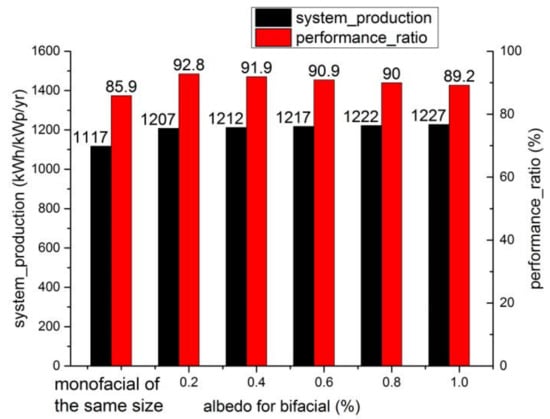 System production and performance ratio for an increasing albedo.