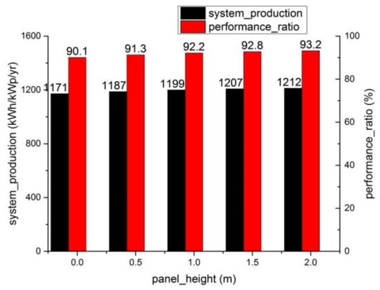 System power production and performance ratio for an increasing module installation height.