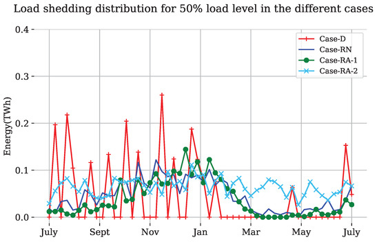 Figure 5 compares the distributions of load shedding in the four cases for a 50% load level increase.