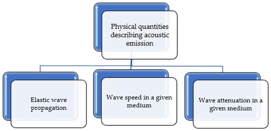 The generated mechanical wave is subjected to physical phenomena. Figure 4 shows the basic physical quantities describing acoustic emission.
