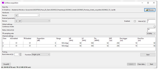 The measurement parameters set in LinWave 1002 compatible Visual AE software.