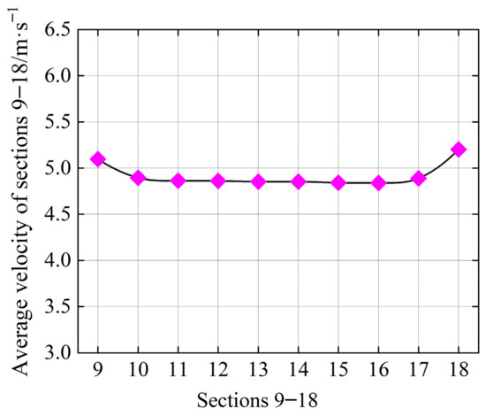 Average velocity of sections 9–18.