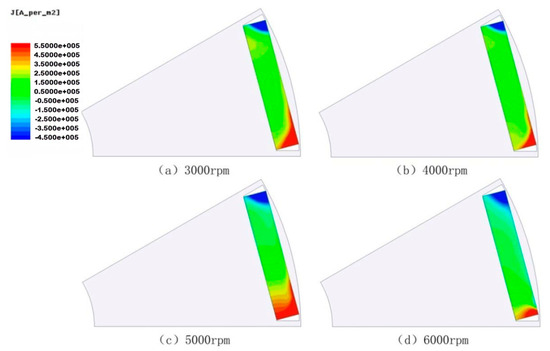 The eddy current density of the permanent magnet at a certain time is shown in Figure 4.