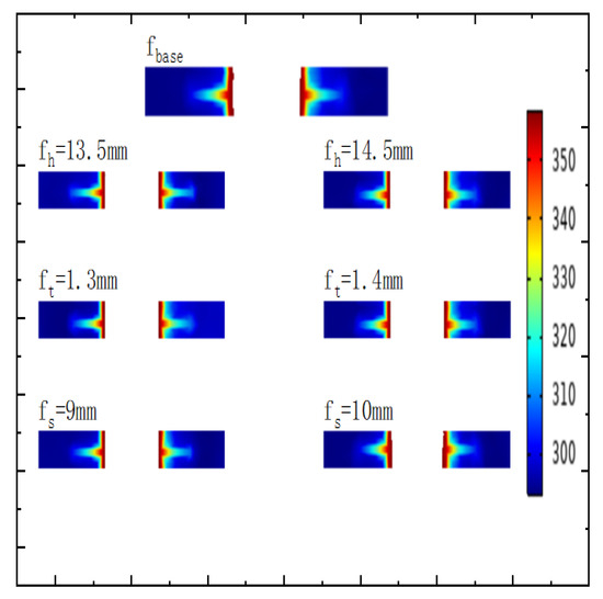 Figure 11 shows the profile temperature distribution of the fin-tubes. From the figure, it can be seen that when the fin height increases, the temperature of the fins decreases, while there is no significant change in the temperature when the fin spacing and thickness increase.
