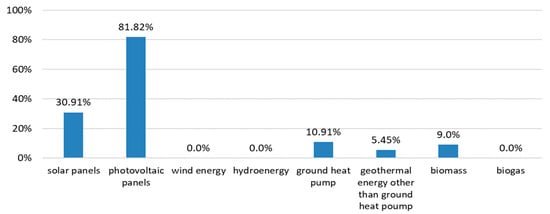 Respondents considered hydropower (52.67%), photovoltaic panels (34.67%), wind power (32.67%), ground source heat pumps (32.67%) and solar panels (31.33%) to be the most environmentally friendly. The least environmentally friendly, according to respondents, are geothermal energy, other than ground heat pump (25.33%), biomass (12.67%) and biogas (6.0%; N = 150).
