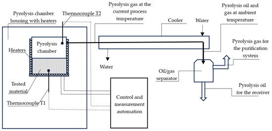 Scheme of the test stand for carrying out the pyrolysis process (author: Waldemar Ścierski).
