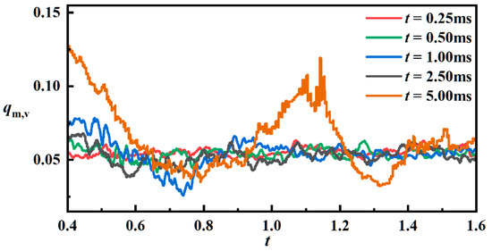 In this paper, an independent validation of the pressure invariant time in this assumption is further carried out in order to avoid the inaccuracy of the calculation results caused by a long period of time for the assumption. The results of this independent validation are shown in Figure 4. The time in this assumption was eventually set to 1 ms to ensure that the calculations can converge sufficiently well with as little detrimental effect on the results as possible.